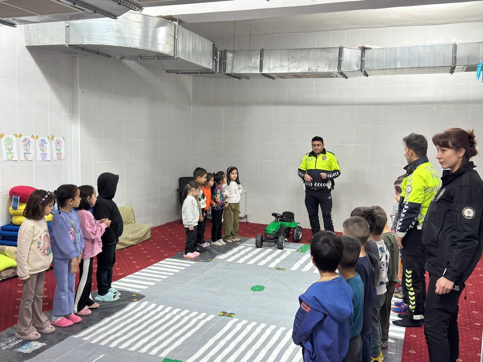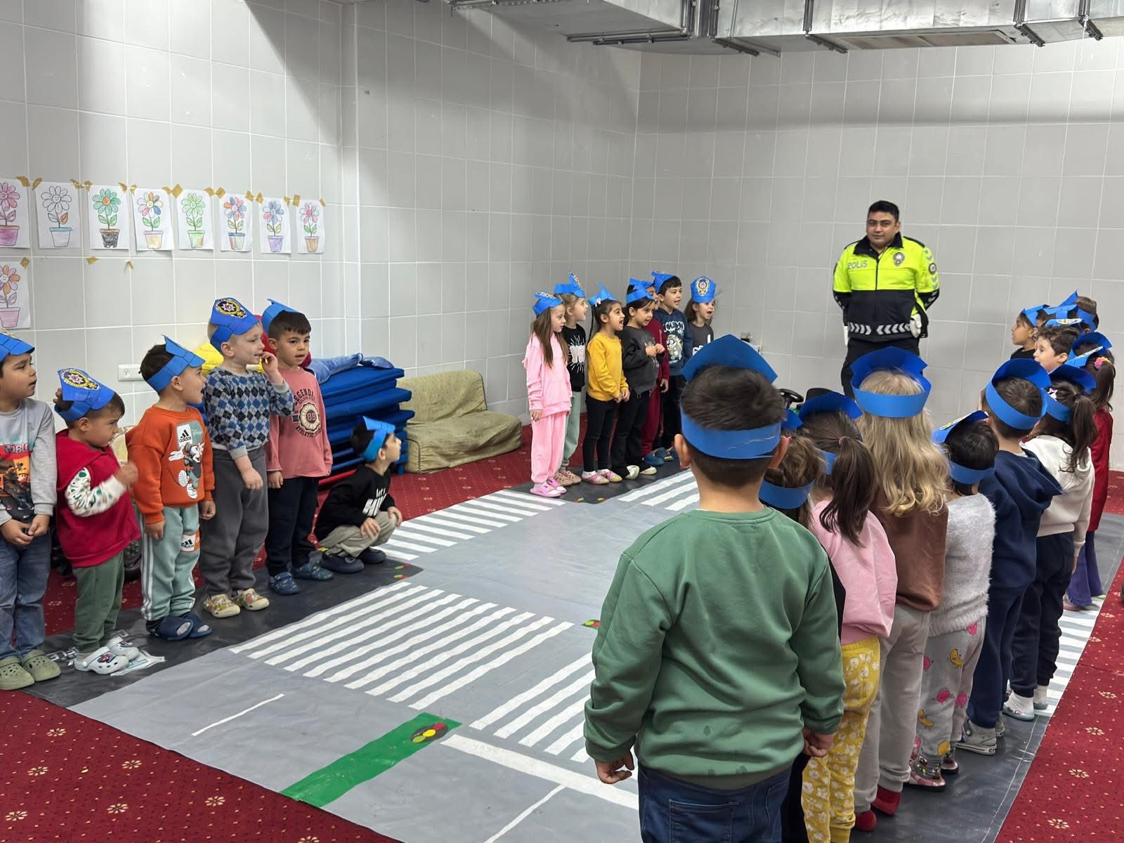 Ziyaret sırasında çocuklara trafik kuralları, yaya güvenliği ve emniyet kemeri kullanımı gibi konularda eğlenceli ve eğitici bir anlatımla bilgilendirme yapıldı. Miniklerin büyük ilgi gösterdiği etkinlik, hem öğretici hem de keyifli anlara sahne oldu.