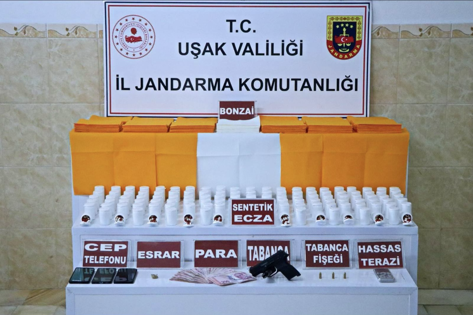 Uşak İl Jandarma Komutanlığı tarafından kaçakçılık ve uyuşturucu suçlarını önlemek amacıyla gerçekleştirilen operasyonlarda, çok sayıda uyuşturucu madde, suç unsuru ve silah ele geçirildi. Yapılan çalışmalar kapsamında yakalanan 3 şüpheli, çıkarıldıkları mahkemece tutuklanarak Uşak Cezaevine teslim edildi.