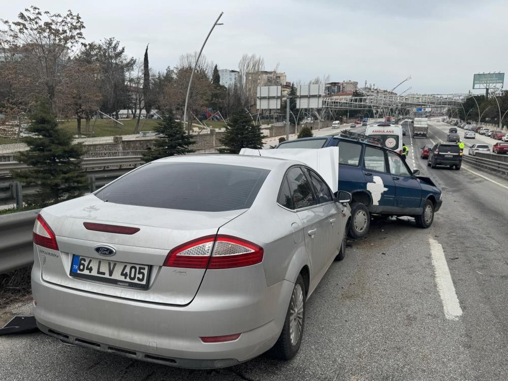Edinilen bilgilere göre, G.T. (23) yönetimindeki 64 LV 405 plakalı otomobil, trafik yoğunluğu nedeniyle yavaşlayan ve önünde seyreden S.Y. (46) idaresindeki 64 AAU 395 plakalı otomobile çarptı. Çarpmanın etkisiyle 64 AAU 395 plakalı araç, önünde bulunan M.D. (56) yönetimindeki 64 LV 431 plakalı otomobile savrularak çarptı.