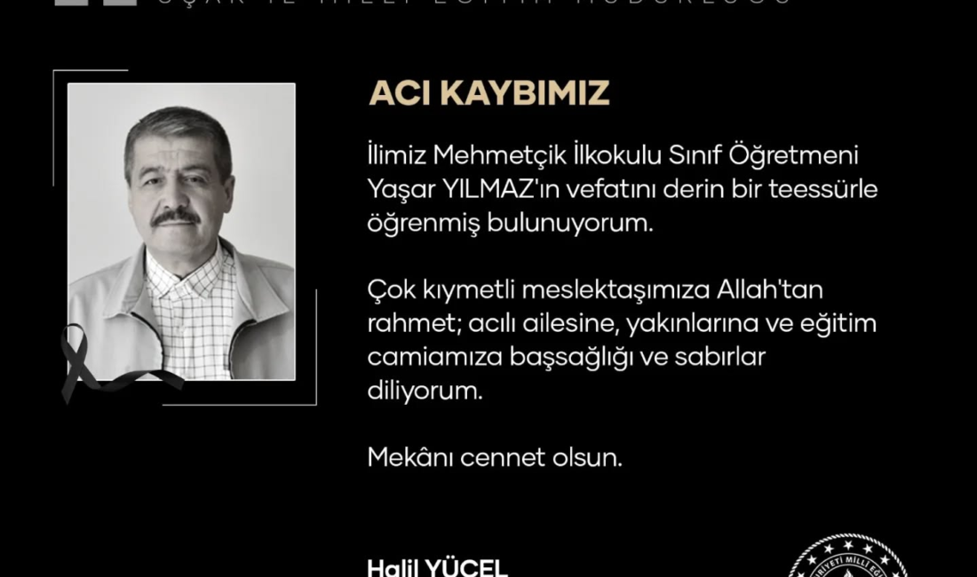 “İlimiz Mehmetçik İlkokulu Sınıf Öğretmeni Yaşar YILMAZ’ın vefatını derin bir teessürle öğrenmiş bulunuyorum.