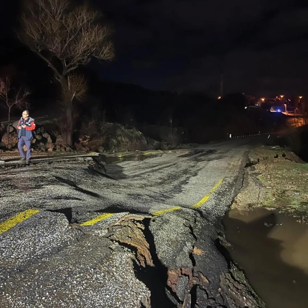 Uşak’ta yol çökmesi nerede meydana geldi?
